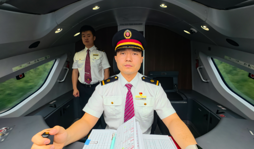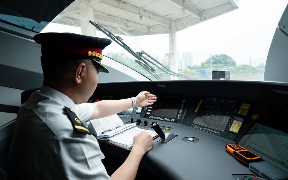 眼观六路、双手联动!他们一边盯着速度表,一边估算着离停车标的距离,手、眼、脑高度协同,才能让几百米长的动车组精准停靠。